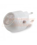 Ideale per la camera dei bambini, genera una luce diffusa che trasmetterà tranquillità per tutta la notte. Utile per corridoi, o scale poco illuminate, ecc... Dotata di LED bianco e rilevatore crepuscolare, la luce si accende solo quando l'illuminazione ambientale è insufficiente. La testa può essere ruotata per dirigere la luce dove serve.